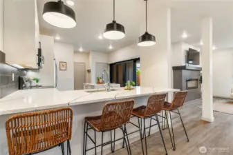 Built in 2023, this home is better than new! Open floorplan on main floor with chef's kitchen & cozy living space with electric fireplace. Great room seamlessly connects to covered outdoor patio with skylight and easy access to turfed, sunny yard & garden space. Upstairs you will find utility room, bathroom, & 3 large bedrooms, including the primary bedroom with vaulted ceilings, and en-suite bath & walk-in closet. Additional bonus/office space over garage can be accessed from primary bedroom or garage. Sunny, corner lot makes this one of the best lots in Crossridge. Complete with high-end window coverings, fenced yard, & custom features throughout.