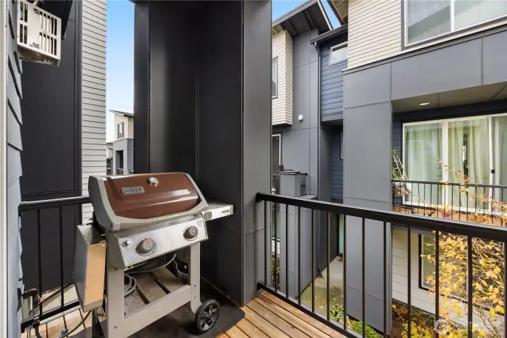 Welcome Home to this 3 Story, 4 bedroom, 3.5 bath end unit townhome in desirable Urbane Village. This home is packed with features, including 2 suites. The primary bedroom on the 3rd floor with luxurious bathroom & large walk in closet. The second suite is on the ground floor, also with full bath, perfect for co-living. Glorious Kitchen with gas range & double oven, stainless steel appliances, huge center island, all with beautiful granite countertops. Storage galore, tons of cabinets, closets & even a walk in pantry. Large separate laundry room close to the bedrooms. Generous open concept living, modern gas fireplace, guest bath & covered deck, with a gas BBQ connection. Positioned directly next to green space, providing views of nature.