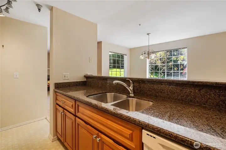This natural light–filled 2BR/2BA ground-floor condo is ideal for first-time buyers, downsizers, or investors! New carpet in bedrooms with WIC in the primary suite. New high-end vanities and quartz countertops in bathrooms. Living room boasts vaulted ceilings, wood-burning fireplace, and serene views of lush greenery. Covered private patio with extra storage—plus the neighborhood playground off the patio for easy outdoor access. Community amenities include pool, SPA, gym, racquetball/basketball courts, and clubhouse. Walk to shops/restaurants/parks/library/public transit/new YMCA. 5-min drive to Factoria and I-405/I-90. Desirable Issaquah Schools. Dues cover water/sewer/garbage/EQ insurance. No rental cap!