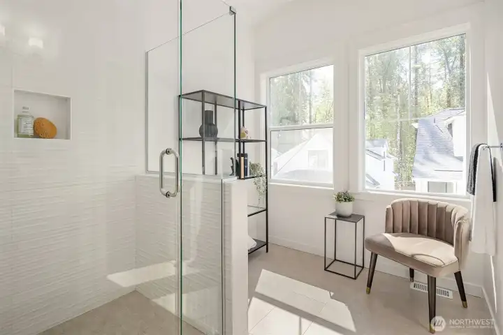 Set on a corner, this home is surrounded with natural beauty in a secluded area of the community. Canopy Cottages from Toll Brothers. The beautiful foyer welcomes you home with stunning views of the main living space and the wooded green space behind. The open-concept great room with gas fireplace is the perfect atmosphere for entertaining, with connectivity to the dining area and views of the outdoor living space. The open kitchen features toffee-stained shaker-style cabinets with golden champagne cabinet hardware, white picket tiled backsplash, and quartz countertops. KitchenAid appliances include a French door refrigerator and a gas range. Lovely upgraded features throughout. Minutes to downtown Kirkland and Totem Lake shopping!