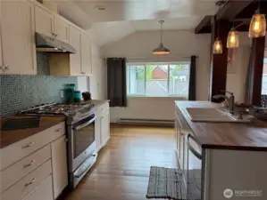 Major price reduction on this charming 1885 home that blends vintage character with modern updates. Features include original yellow fir floors, beadboard walls, built-in cabinets & wraparound porch. New roof in 2021, updated kitchen w/ custom cabinets, butcher block counters, a propane cooking stove and walk-in pantry. Remodeled bath w/heated floors and a flexible office/bedroom downstairs. French doors lead to a private courtyard w/ hot tub-ready pad & hook up. Upstairs is the spacious primary suite with huge closets, a second bedroom and clawfoot tub in upper bathroom. 2-car garage with/work bench & fenced backyard. Walk to beach, shops, & more! Don't miss an opportunity to live in one of the most desired neighborhoods on the peninsula!