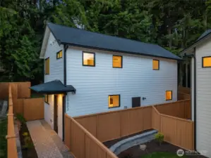 Beautiful modern new construction by Blue Ridge Homes, offering 2 bedrooms and 2.25 baths in a bright, thoughtfully designed layout that blends contemporary style with everyday functionality. Clean architectural lines, abundant natural light, and seamless flow create an inviting atmosphere throughout. The main level is anchored by a sleek chef’s kitchen featuring quartz countertops, stainless steel appliances, modern cabinetry, and an expansive island, perfect for gathering or casual dining. The kitchen flows effortlessly into the spacious living and dining areas, while sliding glass doors extend the space to a private patio, ideal for summer evenings or morning coffee. Upstairs, the serene primary suite offers a generous walk-in closet and spa-inspired ¾ bath with designer finishes. The second bedroom is well-sized and versatile, perfect for guests or a home office, adjacent to a full bath. Upper-level laundry and a designated EV-ready parking space add everyday convenience. Ideally located near Downtown Kirkland, waterfront parks along Lake Washington, top-rated Lake Washington schools, tech campuses, shopping, dining, and major commuter routes.