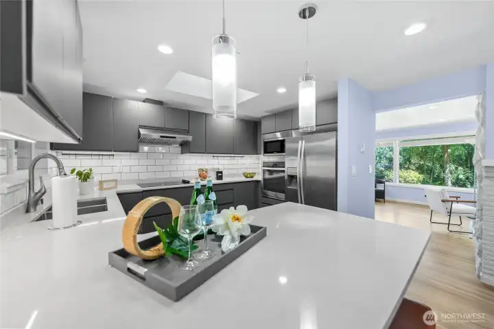 Location, location, location! This beautifully updated 4-bedroom, 1.75-bath rambler sits in the desirable North End of Mercer Island, just steps from downtown with easy access to highways and top-rated schools. Renovated in 2021, it features a modern kitchen, updated bathrooms, new LVP flooring, upgraded electrical and plumbing, newer interior and exterior paint. Set on a spacious 13,000+ sq ft lot, the home offers lush greenery, excellent privacy, and a peaceful setting. There's also potential to add a second story and capture stunning lake views—an incredible opportunity in a prime location.
