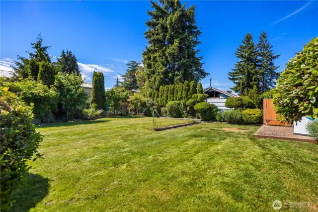 Welcome to your charming rambler nestled in a private, park-like setting! Enjoy beautiful well kept home with sliding glass doors that open onto a spacious deck and an expansive, fully fenced, level yard—perfect for entertaining, gardening, or relaxing. The open-concept kitchen flows seamlessly into the living and dining areas, creating a bright and inviting space with large windows. Mature landscaping surrounds the property with gated fence for added security. Don't miss outbuilding for extra storage. This home combines comfort and functionality—don't miss this rare opportunity! Excellent location, close to freeways, Seatac, shops and dining.