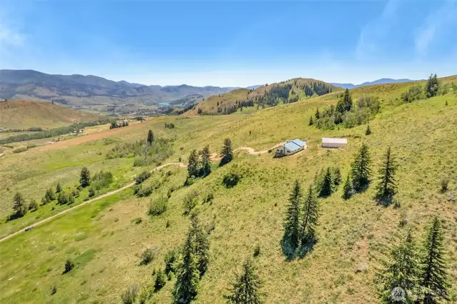 Perched on a bluff with panoramic views, this rare 29+ acre property borders 1,000’s of acres of State land on three sides. Views of snow-capped peaks, upper Rendezvous Valley, shimmering Lake Pearrygin & your own sprawling wildflower-filled meadow, every window is a postcard! Single-story home w/1895 Sq feet offers 3 bedrooms, 1.75 baths, office, & a huge great room/kitchen combo built to capture the views. Attached garage, detached 30 x 48 utility/pole building has tons of space for gear & toys. Two wells ensure reliable water. Create Endless horse options Hiking/biking & snowshoe trails right from your door—explore for hours without ever retracing your steps. Only 5 miles from dwtn Winthrop, yet worlds away in terms of peace & privacy.