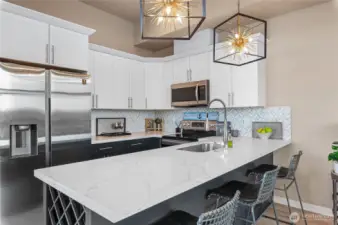 Discover elevated coastal living at Manette Townhomes, a boutique luxury enclave just minutes from the Bremerton–Seattle fast ferry. This four-level residence offers sweeping Puget Sound and Olympic Mountain views from expansive windows, a private main-level deck, and an impressive rooftop retreat. Thoughtfully designed with soaring ceilings, quartz countertops, designer lighting, a sleek electric fireplace, and efficient heating and cooling throughout. The primary suite features a custom walk-in closet and spa-inspired shower. Enjoy a serene, low-maintenance lifestyle with effortless access to dining, waterfront recreation, and a quick Seattle commute. 2,543 ASF including garage, with space for bikes, kayaks, and boards.