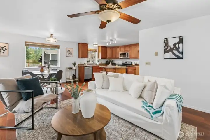 NEW PRICE IMPROVEMENT! Charming 3 bed/2 bath rambler in the heart of Camano Island with access to 3 private beaches just minutes away! Enjoy a relaxed island lifestyle close to two state parks, boat launch, clubhouse & scenic trails—perfect for year-round adventure. Spacious yard ideal for BBQs or soaking up the sun. Inside, a Quadra-Fire fireplace warms the home, while a Daikin high-efficiency furnace, hybrid heat-pump water heater, and Interlock metal roof add comfort & durability. Updated Bausch appliances included! The 2-car garage is currently converted to extra living/rental space but can easily be restored. No ferry needed for this perfect Island retreat—Welcome Home!