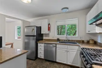 Welcome to this beautiful single-story home featuring three bedrooms, a family room, and a multi-purpose room that opens to a new deck. Fully fenced backyard—perfect for entertaining, unwinding, or gardening. Inside, enjoy a bright, sunlit room complete with a cozy fireplace. Newly installed walk-in shower for an open and spacious look. Freshly painted interior and exterior. Updated laminate flooring to match the warmth and beauty of the original hardwood floor. Newly constructed front deck, RV parking, and electric hookup. Located in a well-kept neighborhood and close to beautiful Chambers Bay. With full price offer, Seller agrees to complete asphalt driveway before closing.