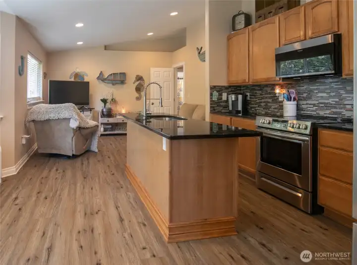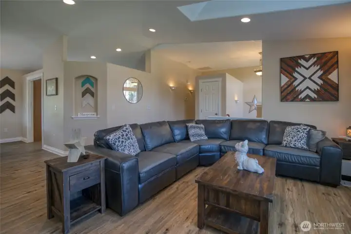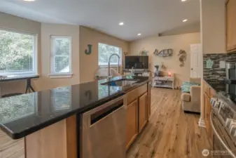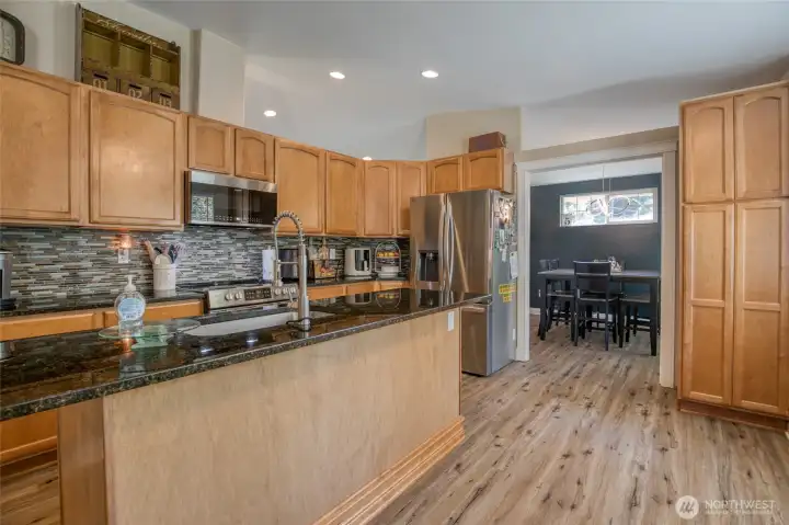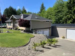 Custom built, desirable Aberdeen Bel-Aire home! Nearly 1/3rd acre! With 2,457 SF of living space on 2 levels, this 4 bdrm, 3.5 bath home offers modern updates. Main floor has livingroom w/cozy fireplace, kitchen, dining room, along with a primary bedroom/bath & another bedroom & 1.5 bathrooms. The versatile kitchen is equipped with stunning cabinetry, granite countertops and convenient center island & flex area. Vaulted ceilings w/skylights throughout home offer plenty of natural light. The downstairs daylight basement has 2 bedrooms, 3/4 bath +wet bar kitchenette. Covered patio overlooks large fenced backyard, ( sprinkler system in front). HUGE detached 50X17 shop + 2 car attached garage with off street parking. Home Warranty included!