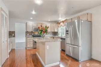 Price improvement! Beautiful home on large corner lot. Mt Rainier view from all front rooms. Prof landscape & fenced yard. Large kitchen w/island, eating area, & adjoining family room with fireplace. 4th room as Den/ Office. 5-piece master bath and walk -in closet. Brand new roof! Great community. Park, tennis court right across the street. Nice home!