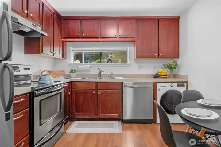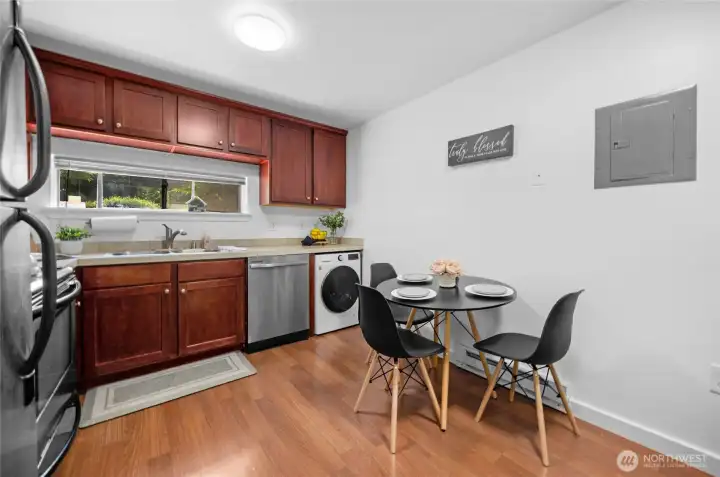 Welcome home to this beautifully maintained ground-floor 2-bedroom, 2-bathroom condo in the heart of Des Moines. This move-in-ready unit features fresh interior paint, oak cabinetry, a private patio with a side yard, and peaceful greenbelt views. Recent upgrades include a brand-new dishwasher and washer/dryer. With no rental cap, it’s a great option for both owner-occupants and investors. Enjoy two assigned parking spaces and community amenities, including a swimming pool. Conveniently located near major freeways, shopping, and Sea-Tac Airport—comfort and convenience await.