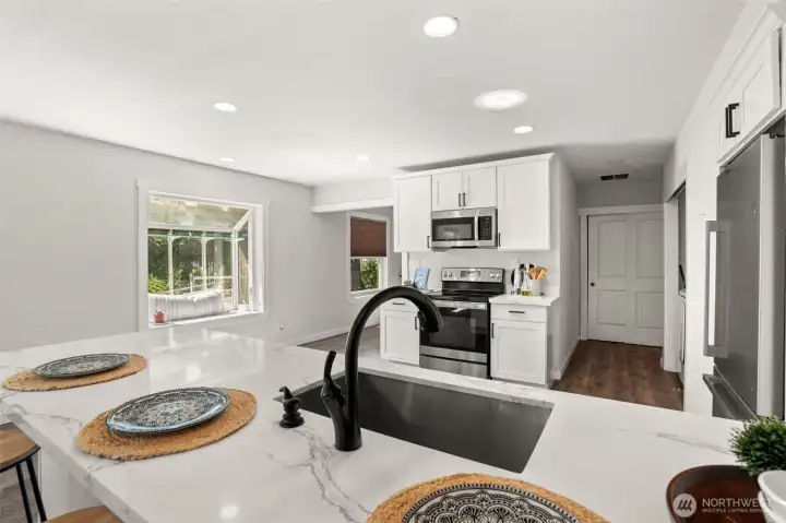 Amazing value for this charming 3 bedroom rambler in a prime location; walking distance to St. Michael's Medical Center, Silverdale restaurants, & Central Kitsap Schools. Upon entering, you're welcomed by a warm & inviting layout, with stylish updates at every turn. The kitchen offers beautiful Quartz countertops, chic white Shaker cabinetry & SS appliances. Well designed, open layout with light & bright living room, seamlessly opening to a second dining area, perfect for entertaining or everyday living. Three well-appointed bedrooms, including the Primary Suite, with attached, modern bathroom & double closet. Loft upstairs offers a flexible space for storage, or a quiet reading room. All of this while enjoying the A/C on hot days! No HOA.
