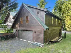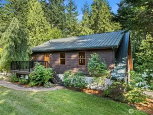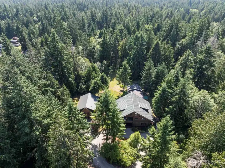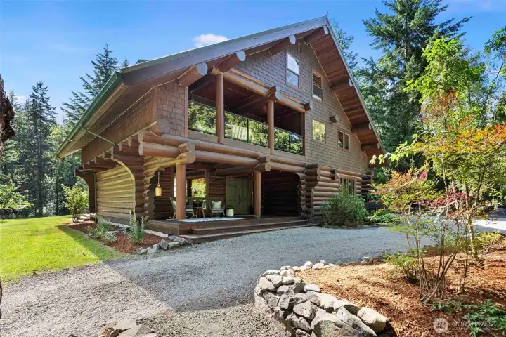 Welcome to your private retreat—an expansive 3,500 sq ft log home nestled on a tranquil 5-acre parcel just minutes from town conveniences. This beautifully crafted residence blends timeless charm with contemporary comfort, offering soaring timber ceilings, a spacious layout, & panoramic views of nature from every window. Beyond the main home, two thoughtfully designed outbuildings expand your lifestyle possibilities with a recreational lodge perfect for entertaining, hobbies, or unwinding with friends and a cozy detached office ideal for remote work, guest accommodations, or a private studio. This estate offers unmatched flexibility in a storybook setting. All this, just a short drive from shops, dining & amenities in Gig Harbor and Olalla.