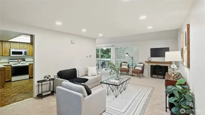 Welcome to this well-maintained townhome in the sought-after Spiritridge community. Refreshed w/new recessed lighting & brand new carpets throughout! Nestled in a quiet complex, this home offers an ideal blend of comfort, style & convenience. Inside, enjoy an abundance of natural light & an open-concept layout perfect for both entertaining & everyday living. The kitchen offers open sight lines to the dining area w/direct access to the private deck looking out to lush surroundings. Upstairs, the spacious primary features a W/I closet & a private ensuite, while an addt'l bedroom & loft provide flexibility for guests or a home office. Located minutes from I-90, shopping, trails, Lake Sammamish, & top-rated schools, this home is truly turnkey.
