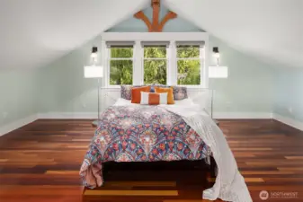 Exceptional 2007 Craftsman just three blocks from Madrona’s shops and dining, offering remarkable space and flexibility across 5,760 sq ft. This 5-bedroom, 4.25-bath home features hardwood floors throughout and a spacious open-concept main level with a chef’s kitchen, double ovens, built-in speakers, and smart home technology—ideal for entertaining on any scale. The upper level includes a luxurious primary suite with steam shower, fireplace, and sweeping views of Lake Washington, the Bellevue skyline, and the Cascade Mountains, plus two additional bedrooms, a full bath, and laundry. The top floor offers a ton of space, providing exceptional versatility with its own open living/sleeping area and bathroom. Perfect for guests, multi-generational living, a private office, or creative studio space. A fully finished basement adds even more room with a private home theater. Enjoy quiet outdoor space ideal for relaxing or hosting. Extras include fiber internet, Cat 5 wiring, a two-car garage with EV charger, and driveway parking for two additional vehicles.