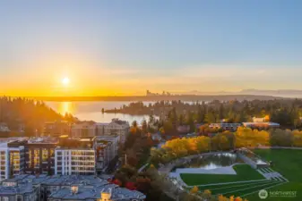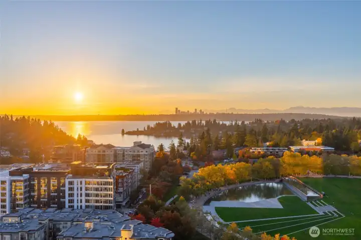 Enjoy the best of the Bellevue lifestyle at this beautiful SW corner 3-Bedroom home with two large terraces designed for modern living and entertainment. Spacious, with Wide-plank hardwood floors and floor-to-ceiling windows that frame Lake Washington and the Seattle skyline. An expansive island centers the chef's kitchen that features Gaggenau appliances and waterfall counters. The spacious owner's suite presents a large walk-in closet and sleek herringbone porcelain tile shower. Private garage with exclusive gate for two cars. World-class amenities include 24-7 concierge, garden terraces, fitness + spin studio, pool, steam room, virtual golf, party room, all a block from The Bellevue Collection and Main Street's shops and restaurants.