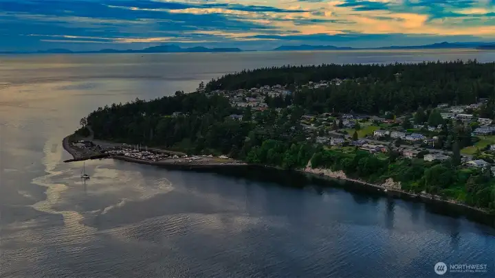 Cape George Colony treasure! Stunning 3 BR view home perched on Colman circle commands sweeping sunset panoramas of Protection Island, marina & San Juans from your custom Trex deck. Exceptional value creates a rare opportunity for you. Gourmet kitchen showcases premium Thermador appliances, custom cabinetry w/LED lighting & luxurious Silestone counters to cook with a view. Self-contained lower level apartment offers flex-space and/or rental income potential w/ full kitchenette and private entry. Mature landscaping features terraced gardens plus two deer-proof fenced areas. World-class amenities include marina, beaches, pool, fitness center and trails. Don't miss this Cape George gem - minutes to Port Townsend's charming historic waterfront.