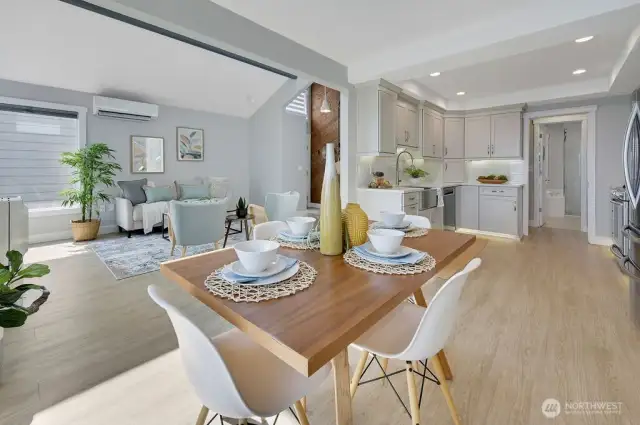 Live the ultimate waterfront lifestyle in this beautifully updated no-bank beachfront home! Wake to stunning sunrises, unwind on the spacious deck just steps from the shore, and soak in endless water views. This 2BD/1.75BA retreat offers a modern kitchen with quartz counters and new appliances, cozy living with a propane Jotul stove, & new windows framing the ever changing seascape. Luxury vinyl flooring. Sizable main level bedroom features spa-like bath with jetted tub and radiant floors. Upstairs: a spacious bedroom, laundry & loft for work/flex space for relaxation. Enjoy crabbing, kayaking & a private boat launch in a welcoming coastal community on Discovery Bay, just 10 miles to town & the many trail systems. Detached 2 car garage.