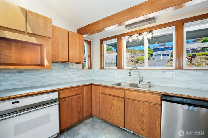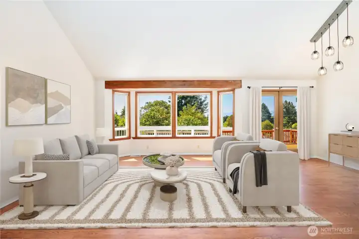 Welcome to this serene 3-bed, 2.25 bath home nestled on .27 lot in East Bremerton. Vaulted ceilings, large windows & French doors create a bright, open atmosphere, while the deck offers peaceful territorial & mountain views. Kitchen features modern appliances & breakfast nook that opens into spacious living area. Main floor hosts primary bedroom w/ full bath, laundry room w/ washer & dryer, & half bath. Daylight basement provides 2 bedrooms, full bath, family room & extra finished space. Updates include interior/exterior finishes & interior flooring. Enjoy fully fenced backyard, garden space, & detached outbuilding. Located on dead-end street w/ easy access to WA-303, local amenities, & transit routes. Wired for a generator & move-in ready!
