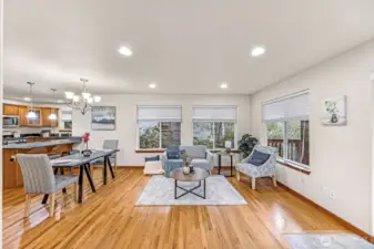 Backed by green space and Lake Louise, this Sudden Valley home sits in a peaceful setting with direct access to one of the area’s most scenic walking trails. Hardwood floors, stainless steel appliances, and an open main-floor layout create a warm and functional living space. All bedrooms are located upstairs, including a spacious primary suite with a large bathroom and walk-in shower. Air conditioning ensures year-round comfort, while the sounds of birds and views of the lake add to the charm. With easy access to nature and resort-style amenities, you'll feel like you're on vacation every day. Community amenities include two swimming pools, a golf course, parks, playgrounds, pickleball courts, a marina, Lake Whatcom access, and more.