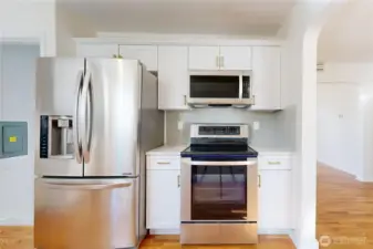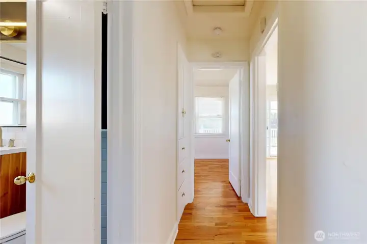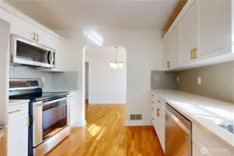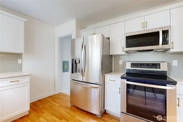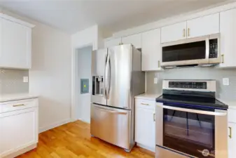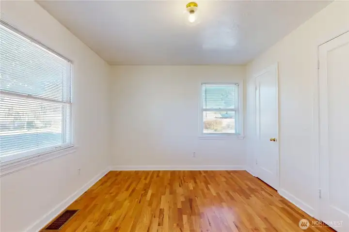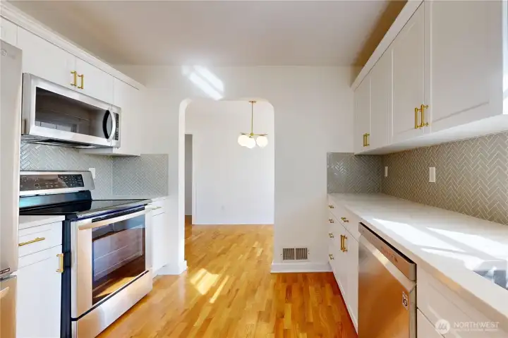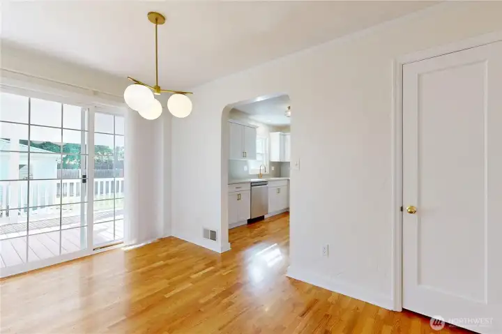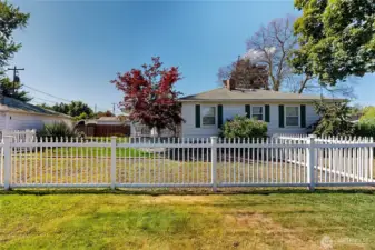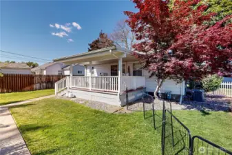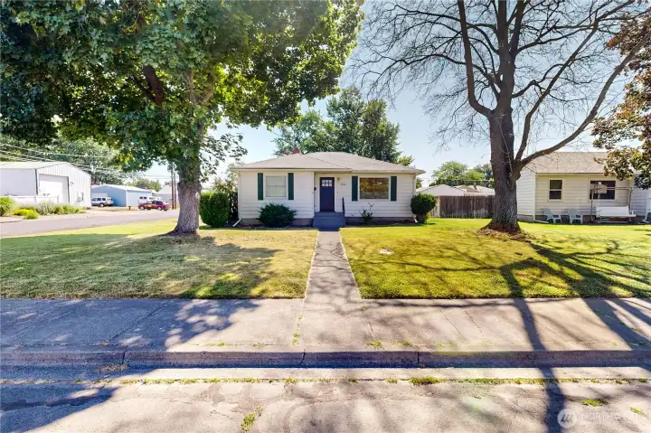 Charming corner-lot home with mature trees and numerous updates! This 3-bedroom, 2-bathroom home offers generous living space, including a basement recreation room. The main floor showcases newly refinished original hardwood floors, a fully remodeled bathroom, and an updated kitchen with quartz countertops. The dining room features sliding glass doors that open to a spacious covered patio—perfect for outdoor dining and entertaining. The fully fenced backyard includes underground sprinklers, RV parking, alley access, and a detached two-car garage.