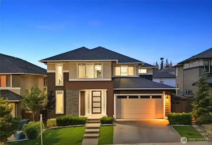 Stunning MAINVUE RESALE w/an impressive, functional floor plan & high-end finishes throughout. Step inside to find a private office, stylish 1/2 bth & a den w/French doors. The open-concept kitchen shines w/a dramatic eating island & Butler’s pantry, flowing seamlessly into the family room w/gas fireplace & spacious dining area. Two slider doors open to a covered deck w/outdoor gas fireplace—perfect for year-round enjoyment. Entertain on the stone patio surrounded by turf, raised flower beds & custom lighting. Upstairs offers a 2nd living room w/Cascade views, 3 bedrooms, full bth & laundry. French doors lead to a luxurious primary suite w/WIC & spa-inspired 5-piece bth. Smart Home system, sealed garage floors, trails, parks & so much more!