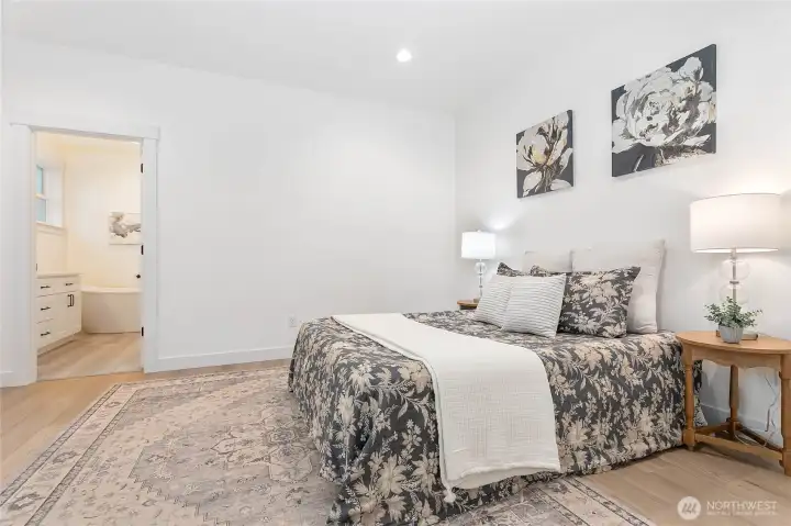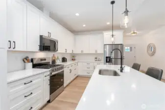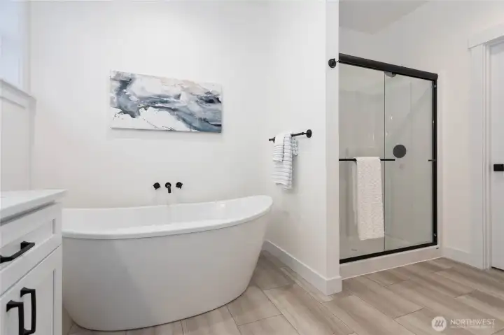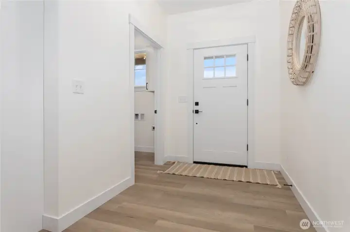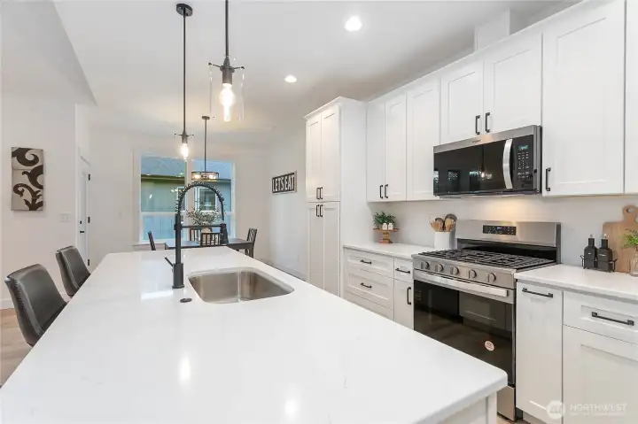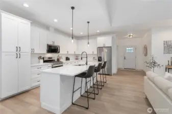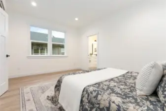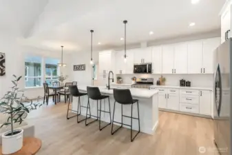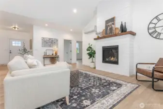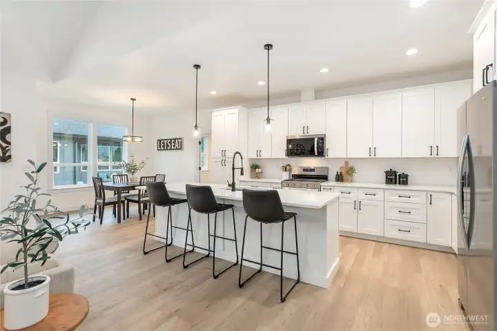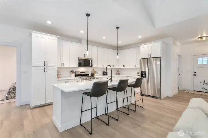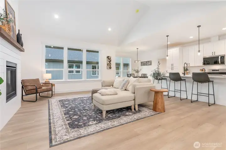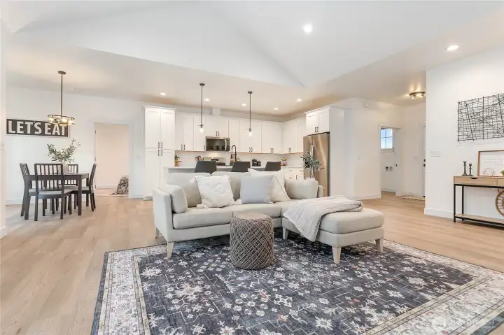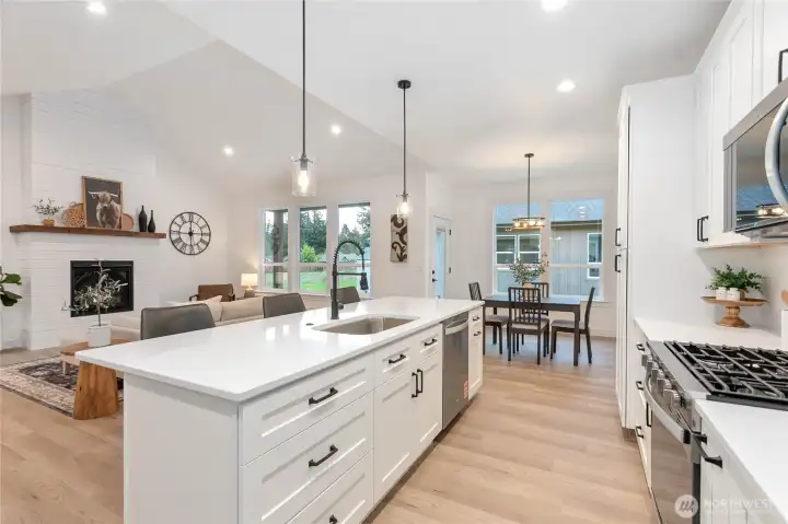 Beautiful new Pacific Edge Builders home w/ 4 bed & 2 bath on one level w/ large 3 car garage! Custom designed finishes including quartz countertops & LVP flooring throughout. Upgrades including gas fireplace & air conditioning. Large kitchen w/ custom cabinetry, tile backsplash and stainless steel appliance package. Open design concept with vaulted living room and functional floor plan. Primary bedroom with large walk in closet, bath with soaker tub & separate walk in shower. Large covered patio w/ gas hookup great for year round grilling and entertaining. Great location in a neighborhood of new homes with a short walk to Everson Elementary School and community park. Vacant and move in ready!