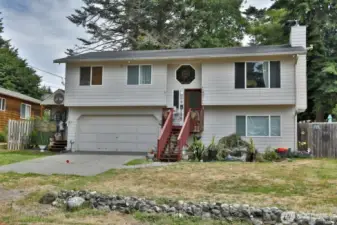 Located south of Coupeville in beautiful Admirals Cove. Double lot w/ gated rear entrance. Open Concept kitchen and living room with cozy wood-burning fireplace perfect for gatherings. Lower level family room w/ opt as second master or rental! Upstairs master w/ bath and walk in closet. New 25 yr stain resistant carpet in Master and 2nd bedroom and stairway. Deck overlooks property w/ garden space & room to park RV or boat. Enjoy the Large Lot and double access. Septic Inspection Completed. Fun Tree House in back of Lot. There are two shops, 12'x24' and 8'x24' located in the back of the lot. Possibly VA Assumable. The home has interior and exterior Security cameras that are operational.