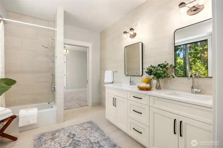 NEW CONSTRUCTION with superb craftsmanship, excellent natural light & flexible layout featuring a breathtaking open great room with floor-to-ceiling windows overlooking peaceful, sunny Eagledale acreage. Gorgeous Chef's kitchen w/beautiful tile and high-end appliances. Primary suite w/spa-like bath in its own 'private wing'. Addl primary suite on main floor & extra full bath upstairs for a total of 4.5 baths. Generously sized rec room & laundry room, office, plus 1500+ sq ft of storage in unfinished daylight basement. Easy 10-min drive to Seattle ferry, shops & cafes, adjacent to an extensive trail system connecting you to water access at Blakely Harbor, Pritchard Parks. Artfully landscaped, 3 car garage. A phenomenal value at $627/sq ft.