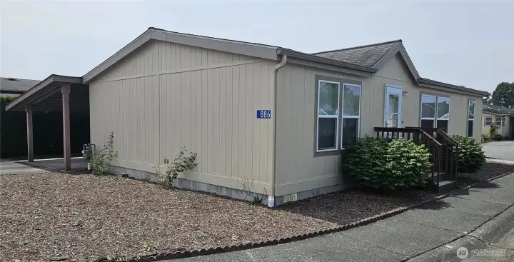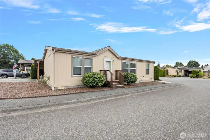 Like new 2014 Double wide home located in premier 55+ park in Sedro Woolley. 3 bedrooms, 2 full baths, and open and bright floor plan. Spacious kitchen with oak cabinetry and abundant storage. Large primary bedroom with walk in closet and adjacent full bath. 2 additional medium sized bedrooms with shared bath. All appliances are included. Separate laundry room. Outside is a low maintenance lawn and includes a carport, 2 storage buildings (4x10 and 8x12) and one extra parking space. Community features available storage units, RV parking, clubhouse, and community park. Park is centrally located near all services and recreation.