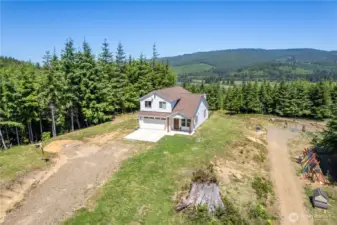 Modern Living meets natural beauty nestled on 13+ forested acres, offering privacy, space and style. Soaring windows flood the space with natural light and frame sweeping views. The grand kitchen has both beauty and function, featuring quartz countertops, stainless steel appliances, abundant storage and counter space. It flows into the dining area and family room, where a wood stove adds warmth and charm. The primary suite is a true retreat with a large walk-in closet and a spa-like bathroom. Two additional bedrooms and 1.5 baths round out the thoughtfully designed floorplan. RV parking, space for a shop and a small pasture ready for your hobby farm dreams. Potential to subdivide (buyer to verify). This is Northwest living at its best!