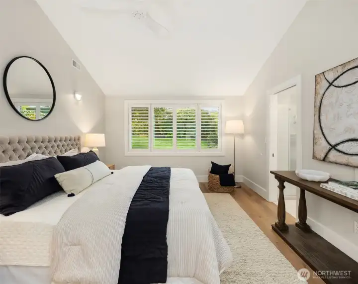 Discover unparalleled elegance in this meticulously updated one-level home situated on a view lot at the top of Vuecrest. With over $ 1 million in upgrades in 2024, it offers the perfect blend of modern sophistication & timeless design with custom finishes, high-end materials, & new systems. White oak hardwoods, gallery walls, a gourmet kitchen with new Wolf, Sub-Zero, & Miele appliances, stone fireplaces, & a serene primary...every detail has been carefully crafted for maximum comfort & style. Enjoy seamless indoor-outdoor living with walls of windows & French doors that open to an entertainer’s patio with full Mt. Rainier + city views. Private & beautifully landscaped grounds create a peaceful oasis just steps from downtown Bellevue