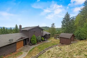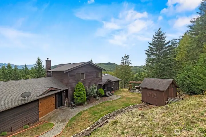 Private retreat nestled on 7.64 acres of pristine, secluded landscape. Custom-built home offers true Northwest living w/panoramic Mountain Views. Spacious main floor featuring vaulted ceilings, a wood-burning fireplace. Kitchen boasts modern appliances, a walk-in pantry, and a generous dining area, with French doors opening to a Trex deck perfect for entertaining. 2 main-floor beds & a ¾ bath offer flexibility. Upstairs, enjoy a private primary suite w/remodeled 5-piece bath. Lower level includes family room w/fireplace, an additional 4th bed or office, bar top seating, & game room. Outdoors, unwind by the fire pit & enjoy the serenity! Outbuildings + room for Shop. Bike & ATV trails throughout. Room for farm animals. Pre-inspected home!