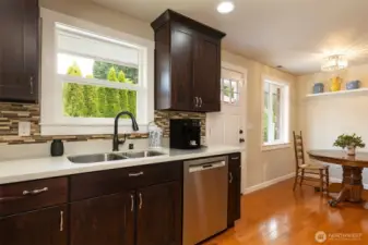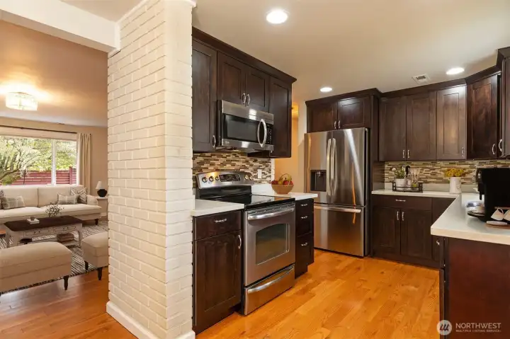 Turnkey Edmonds rambler on a spacious corner lot! Classic curb appeal, charming brick & wood exterior framed by lush, mature landscaping. Step inside this well-maintained home to a cozy living room with hardwoods and a welcoming fireplace. The open kitchen and eating space flow to a sunny deck & patio - perfect for entertaining or simply relaxing in your private backyard oasis. Fully fenced for your furry friends! 3 beds & 1.5 baths make for easy rambler living. Updates include new water heater, covered gutters, & a recently serviced heat pump for peace of mind - plus AC for those hot summer nights! A roomy 2-car garage & 5 off street parking spots outside! Convenient to downtown Edmonds, schools, shopping and freeway/light rail access.