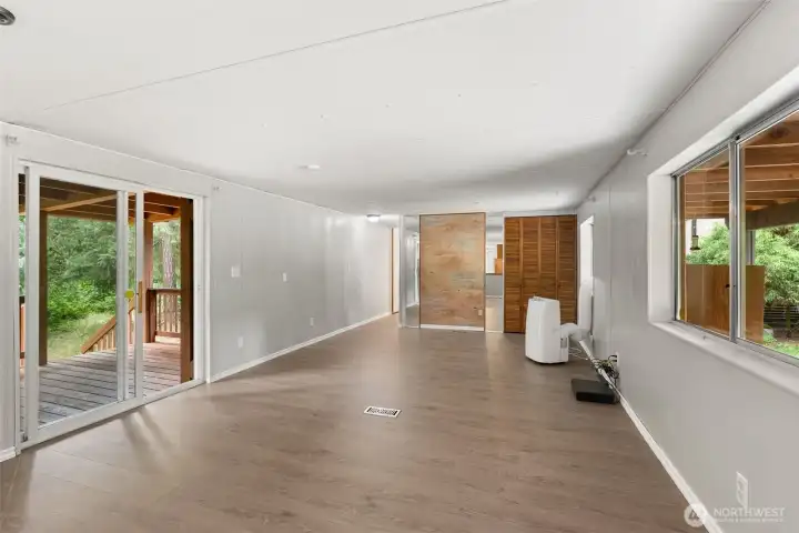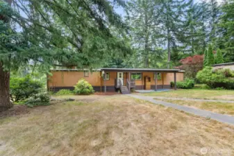 Enjoy the serenity of rural living on nearly seven acres of mostly wooded land, just 3 minutes from I-5. This peaceful retreat features a charming 2-bedroom, 2-bath home with a bonus room—perfect for crafts, canning, or a workshop. New flooring and fresh interior paint brighten the open-concept living area. Relax on the large covered back deck, or explore the 3/4-mile cleared pathway through the trees. A second home on the property offers potential as an ADU, office, or storage—or remove it for your own vision. With 2 electric meters and 2 septic tanks, this versatile property offers many possibilities in a prime location.