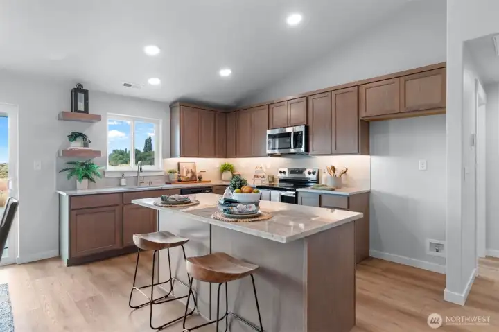ASK US HOW YOU CAN GET A $1,826* MONTHLY PAYMENT ON THIS HOME AND A 3.99% INTREST RATE* At 1692 square feet, The Keizer is a mid-size home that makes the most of its single-story layout. This thoughtfully designed space begins as you enter the home with a convenient coat closet off the entryway. From there, you’re welcomed into the main living space by stunning vaulted ceilings, where you’ll find the great room, dining room and kitchen featuring an oversized island with seating and a large pantry. The vaulted ceiling continues into the private main suite, where you’ll find a dual vanity bathroom and spacious closet. On the other wing of the home lives the shared bathroom and two additional bedrooms, each with generous closets.
