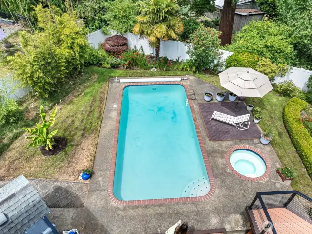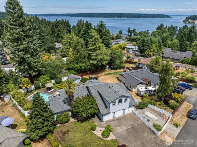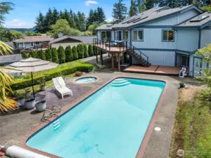 Tucked away on a quiet cul-de-sac, this spacious Gig Harbor home blends comfort and versatility. Vaulted ceilings, hardwood floors, and a sunlit solarium set the tone, while the main-level primary suite offers a private retreat. With 3 bedrooms plus bonus spaces, it lives large and flexible. Enjoy a replastered pool with updated systems, newer sand filter, and hot tub—all viewed from a nearly new Trex deck. A peek-a-boo Sound view upstairs, newer water heater, and daylight basement complete the picture. This is relaxed Northwest living at its finest. Just steps from Historic Downtown Gig Harbor restaurants, shopping, and amenities, easy access to Hwy 16, and Uptown, too!