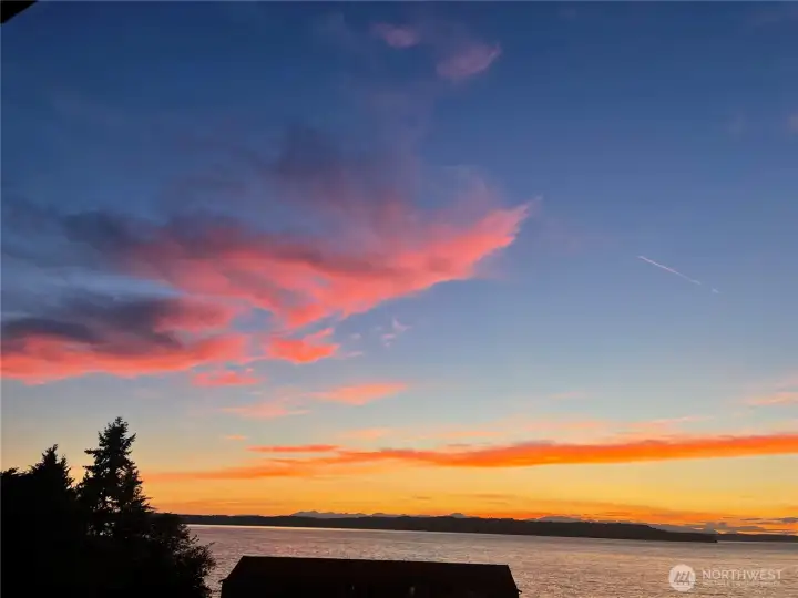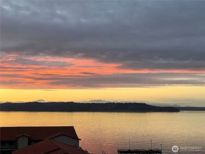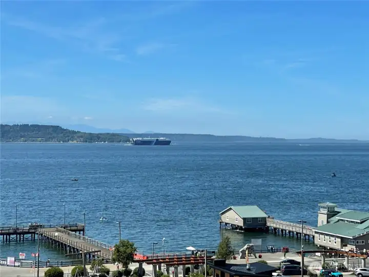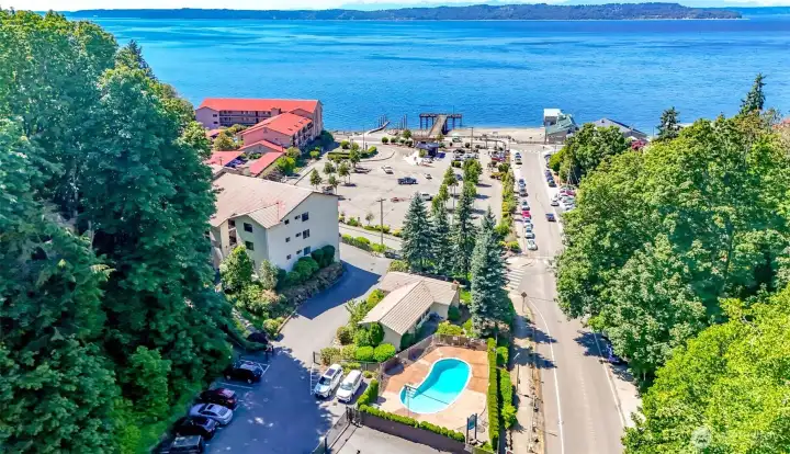 AMAZING Puget Sound view including Olympic Mountains & beautiful sunsets! Steps from Redondo beach, boat launch, boardwalk & park. Unique opportunity to own this top floor unit with soaring vaulted ceilings, gas fireplace & newer carpet. Wall to wall windows offer bright natural light to living spaces. Relax on the private balcony year round includes storage closet). Primary bedroom w/custom walk-in closet & recently updated en-suite. Second bedroom/office w/large closet. Spacious laundry room w/storage & newer hot water tank. Includes 2-car tandem garage & gated parking lot w/ boat/rv parking. HOA dues: water/sewer/garbage/gas/TVcable/internet/road maintenance/common areas. Appliances stay, dishwasher is new! Furniture/TVs are negotiable.