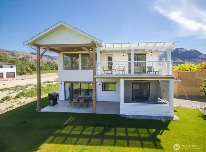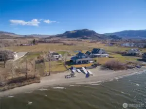 PRICED BELOW ASSESSED VALUE!! Stunning Modern Craftsman Lakefront home with 58 feet of no-bank waterfront on Lake Osoyoos. Expansive great room overlooks the lake with floor-to-ceiling stone wood-burning fireplace. Entertainer's open-concept kitchen with quartz counters, stainless appliances & soft-close cabinetry. Spacious primary bedroom on main floor features walk-in California closet & ensuite bath. 2nd and 3rd bedrooms above, large family room to spread out and private den/office with glass sliders leading to covered deck. Relax and entertain outdoors with screened porch, covered patio, huge yard and of course, your very own private beach. Lots of parking with RV hookups. Extra deep 2 car garage offers abundance of storage space.