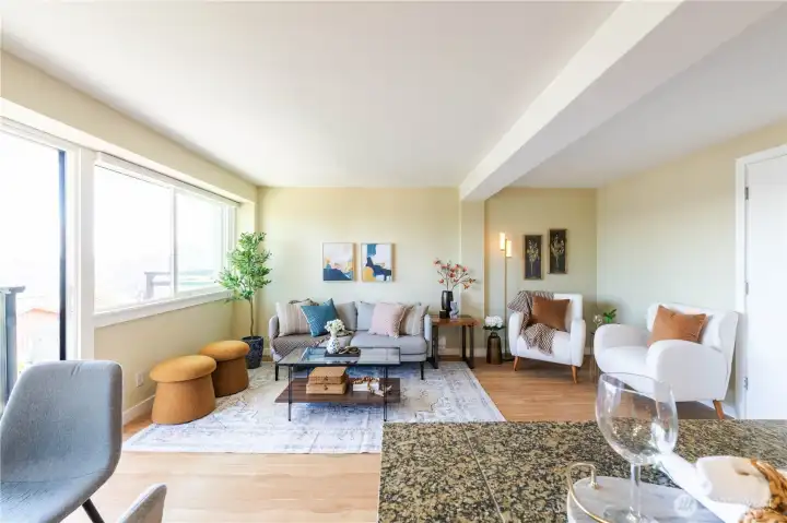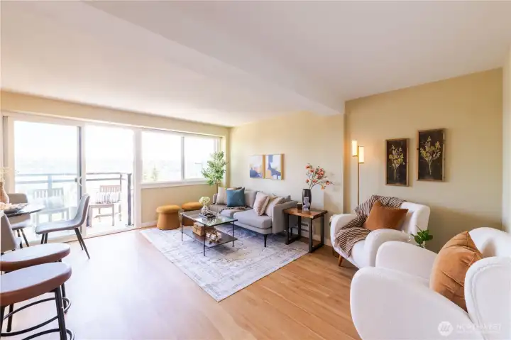 Spectacular views abound in this light filled 2 bedroom, 1 bath Seattle condo! 5th floor of the well-maintained Taylor building, sip your coffee on your deck while you take in the views of Queen Anne, Lake Union, downtown Seattle, and the Cascade Mountain range! This is a really great location, close to many employers, restaurants and night life. Nearby Fremont and Ballard and all kinds of recreation are very near. Go Kayaking on Lake Union, enjoy Queen Anne, and the whole South Lake Union Area. Storage Unit included. Deep parking space in common garage can fit 2 small cars in a row Newer roof and exterior of building. NO RENTAL CAP!