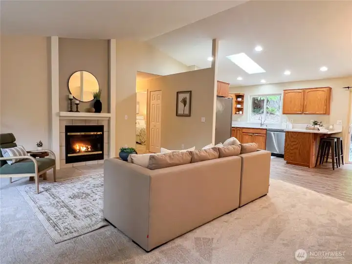 Price adjustment! Nestled on a private lot among the trees, this single-level welcoming 3 bed 1 3/4 bath home with an open floor-plan lives much larger than the square footage suggests. The bright kitchen with skylight features new quartz countertops, sink, faucet, and has stainless appliances. Dining room with a sliding door a private back patio. The spacious living room has a large window and gas fireplace. Private, generously sized primary suite. Spacious 2 car garage and side parking. Private lot, fenced front courtyard, just 2 minutes from the Inn at Port Ludlow, Marina, and Bay Club with its stunning views. Newly updated kitchen and baths, new fixtures, flooring and quartz counters throughout, this stunning home is move in ready!