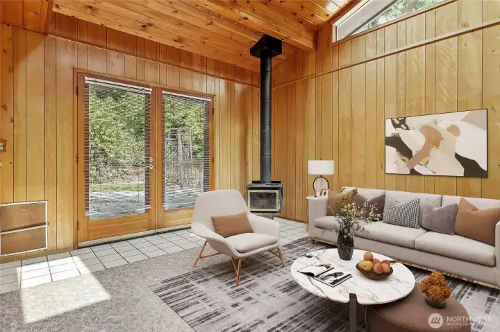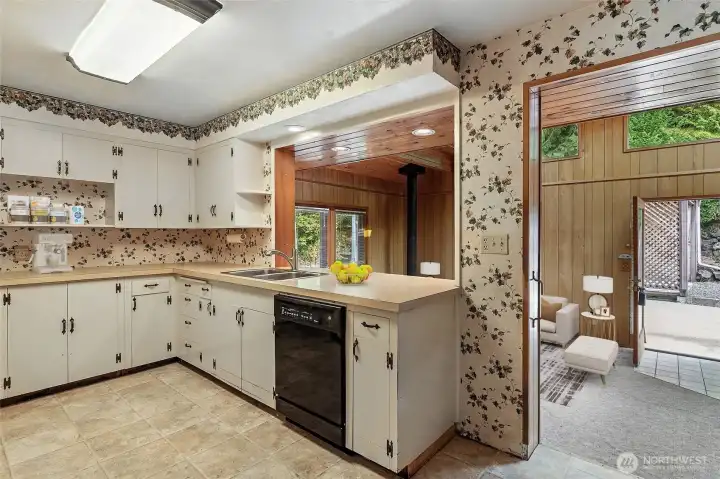 Lower Marine Drive, mid-century, one-level home--ready for your vision & fresh paint. Home lives large! Restored, inspected 4-bed septic completed 2025, Heat pump & insulation 2024, Roof in 2021- .57-acre lot w plants & evergreens. 2 car detached garage w/shop has finished loft space above for storage & office. Home has primary bedroom ensuite; 2nd kitchen & family room was used as private living space. Main living room next to family room warmed by beautiful fireplace. Formal dining room, bath & 3 additional bedrooms. Vaulted sitting room with French Doors off patio & adjacent to main kitchen. Located just 10 minutes from Seattle Ferry & Shipyard. Super easy access highways & Naval Bases! Near schools, restaurants, shopping & healthcare.