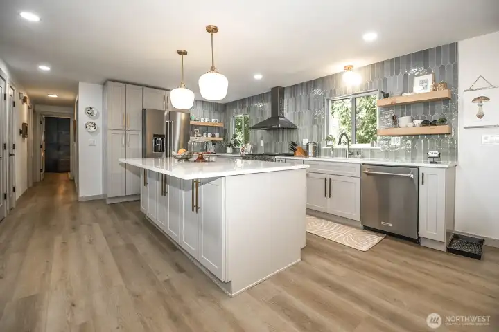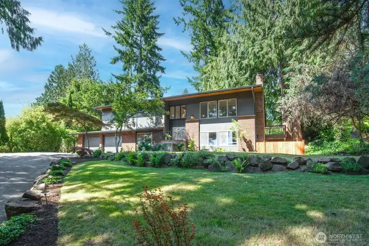 Stunning, like-new split-level on a serene park-like lot in Kenwanda. Fully renovated with timeless charm and modern style. Designer kitchen with shaker cabinets, quartz counters, and oversized island, envouge hardware and high-end stainless appliances flows to dining and chic living area with painted brick fireplace. Oversized windows showcase partial Snohomish Valley and Cascade views. Primary suite with updated bath, two more beds, & full updated guest bath. Flexible lower level offers stylish rec room w/w/built-ins, fireplace, 4th bed, half bath & laundry, storage/flex room, plus private entry, ideal MIL/guest suite. Tranquil yard, big deck, 2-car garage w/ shop, newer roof, new furnace/water heater, Snohomish schools, and HWY 9 access.
