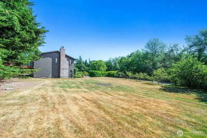 Set on a sunny 0.5-acre corner lot, this spacious 4-bedroom, 2-bathroom home offers 2,000 sq ft of comfortable living with a light-filled, open floor plan. The main level features a bright living room and kitchen, while the lower level includes a large family room—each with its own cozy fireplace. A west-facing deck is ideal for afternoon sun and summer gatherings. The expansive yard is a gardener’s dream with established fruit trees and all-day sun. Located in a peaceful, well-loved area with easy access to Raab's Lagoon Beach and Park, Dockton Park Trails, and the Golf & Swim Club—Whether you're entertaining, exploring, or simply enjoying the setting, this home has it all.