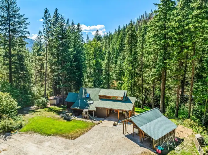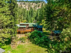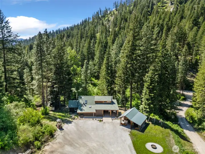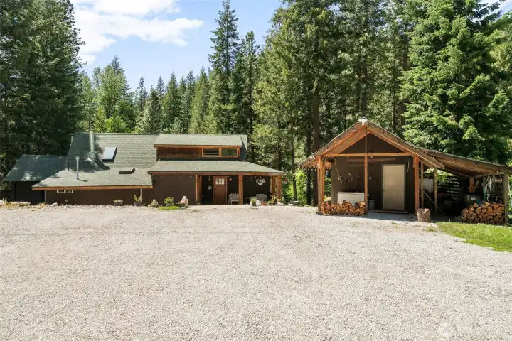 Discover your mountain paradise on 10.32 acres of serene woodland. This property is the epitome of rustic charm combined with modern updates, offering a forested retreat right at your doorstep. Nestled amongst towering trees & bordered by public land, experience the tranquil ambience & soothing sounds of your very own year-round creek. Boasting an expansive 2,400 sq. ft. shop complete with a spacious apartment - ideal for guest accommodations or home business. Multiple storage sheds & RV parking pad w/hook-ups add to the desirability. Breathtaking views that soar over the landscape & fully equipped for livestock with fencing & ample level topography, this property is perfect for those seeking a idyllic lifestyle amidst the mountains.