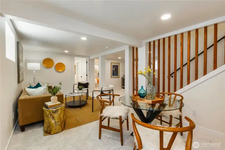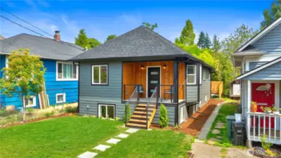 Essentially new construction with a fully permitted remodel in vibrant Columbia City! Step into tall ceilings and an open-concept layout featuring new windows, roof, siding, and more. Enjoy sleek new bathrooms and a modern kitchen with stainless steel appliances incl gas 6 burner stove. Main level offers a primary suite with ensuite, second bedroom, and full bath. Lower level includes a spacious family room, two more bedrooms, full bath, and wet bar—perfect for entertaining. Energy-efficient with all-new insulation and earthquake-ready with completed seismic upgrades. Outdoor patio access from dining area. Prime location near shops, dining & transit!