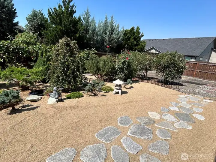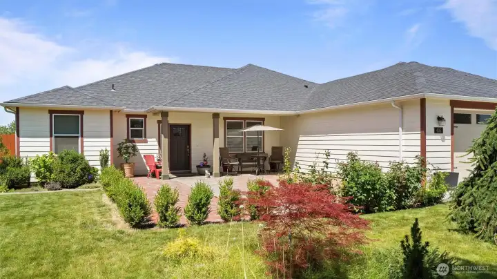 One-level home in a friendly neighborhood, close to the elementary & HS. This home features 3 bedrooms, plus 2 add'l rooms currently used as an office & den - both w/ closets, offering potential as extra bedrooms. The primary bedroom is a retreat of its own, w/ a spacious layout, en-suite bath, & huge walk-in closet. Features include: high ceilings, open concept, breakfast bar, soft-close cabinetry, granite counters, & gas fireplace. Perfect outdoor space w/ large patio in front & covered patio in back, & large yard that's a gardener’s delight, w/ many plants, flowers, fruit trees, vines, & garden beds, w/ UG sprinklers & drip. The 984 sq ft garage offers room to work, storage & plenty of room for 3 cars. No HOA. Pre-inspection completed.