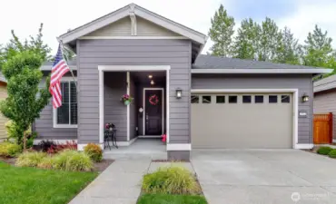 Pristine, Luxe, like new best describes this green belt premium lot 1928 sq ft home in the 55+Trilogy section of Tehaleh. Built in 2022 by Shea Homes the Reunion plan offers a wide entry that flows seamlessly into the living area. Large living room and a dedicated formal dining that looks out onto a serene, private back yard. Chefs kitchen with upgraded top of the line appliances, huge island and large pantry. Office/Den with glassed in French doors. Primary bedroom and bath with beautiful tile and walk in closet, also upgraded! 2nd bedroom with adjacent bath that is anything but standard. Utility room with tons of storage and handy utility sink.