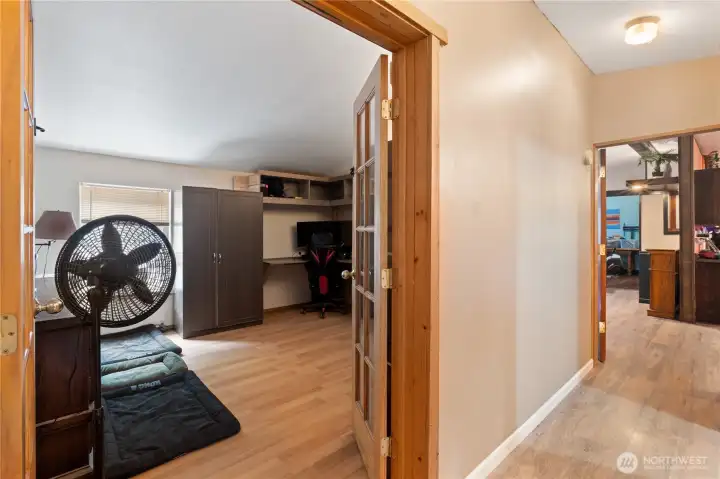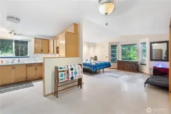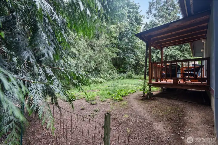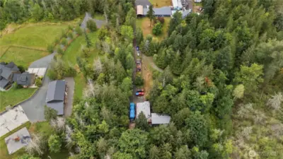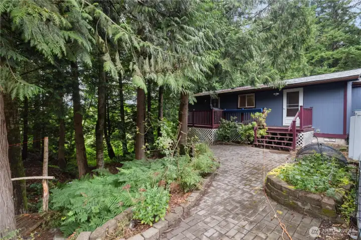 Discover a private retreat on 6+ peaceful acres. This nearly 2,000 sq. ft. home offers versatility with two kitchens and separate entrances, ideal for multi-generational living, guest quarters, or rental space. The open floor plan flows through a bright living room, dining area, and flexible office/den, perfect for remote work, hobbies, or guests. Large windows frame serene views, and the back deck opens to a lush forest. Explore wooded trails, enjoy mature fruit trees, and create your own garden oasis. Recent updates include a new roof, fresh flooring, and several newly painted rooms. With high-speed internet and a tranquil setting just minutes from Bellingham, Ferndale, and Lynden, this home blends convenience, privacy, and natural beauty. The current VA loan balance of approximately $466,000 is assumable at an incredible 2.375% interest rate. Buyer would need additional financing or cash to cover the remaining balance. Buyer must have their own VA certificate to assume the existing VA loan. Buyer to verify.