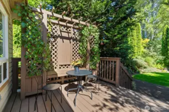 Tucked away on a quiet cul-de-sac near Lake Meridian, this beautifully updated townhome lives like a standalone w/out the maintenance. Enjoy a private, fully landscaped yard that backs to peaceful green space. The main level features a spacious formal entry, an open-concept kitchen, dining, & living area w/a cozy gas fireplace, and a convenient powder room for guests. The primary suite is also on the main floor & includes a private ensuite bath perfect for easy, single-level living. Upstairs, 2 additional bedrooms & 1 full bath offer flexibility for guests, home office. Every window frames a garden or greenbelt view, creating a sense of peace and connection w/ nature. 4min from trader Joe's and 9 min from Covington Costco.